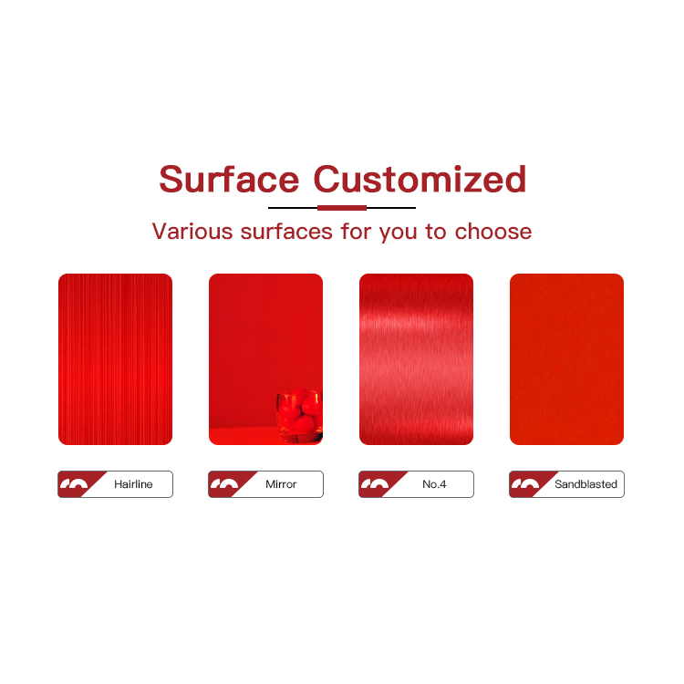 A: Our main products include 201/304 series stainless steel sheets with 2B/BA/HL/8K/Colored/Etched/embossed or customized finish.