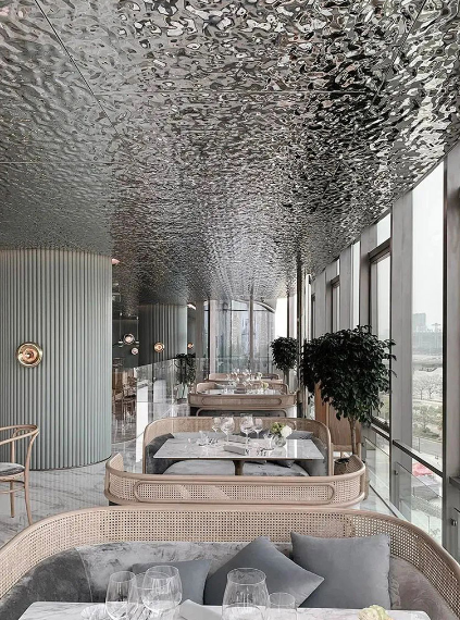 The most striking feature of water ripple stainless steel is its unique visual texture. Through precision stamping, the metal surface mimics the organic, fluid patterns of a disturbed water surface. This creates a stunning metallic luster that feels both futuristic and sophisticated. When applied to ceilings, it can make a room feel expansive and ethereal; when used on walls, it adds a dynamic layer of depth that traditional paint or wallpaper simply cannot match.