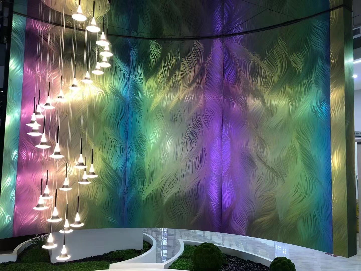 Transform your hotel lobby into a welcoming and stylish space with our rainbow brushed stainless steel decorative panels. Not only will it demonstrate your dedication to quality and design, but it will also leave a lasting impression on your guests. Elevate your decor with this unique and beautiful panel today!